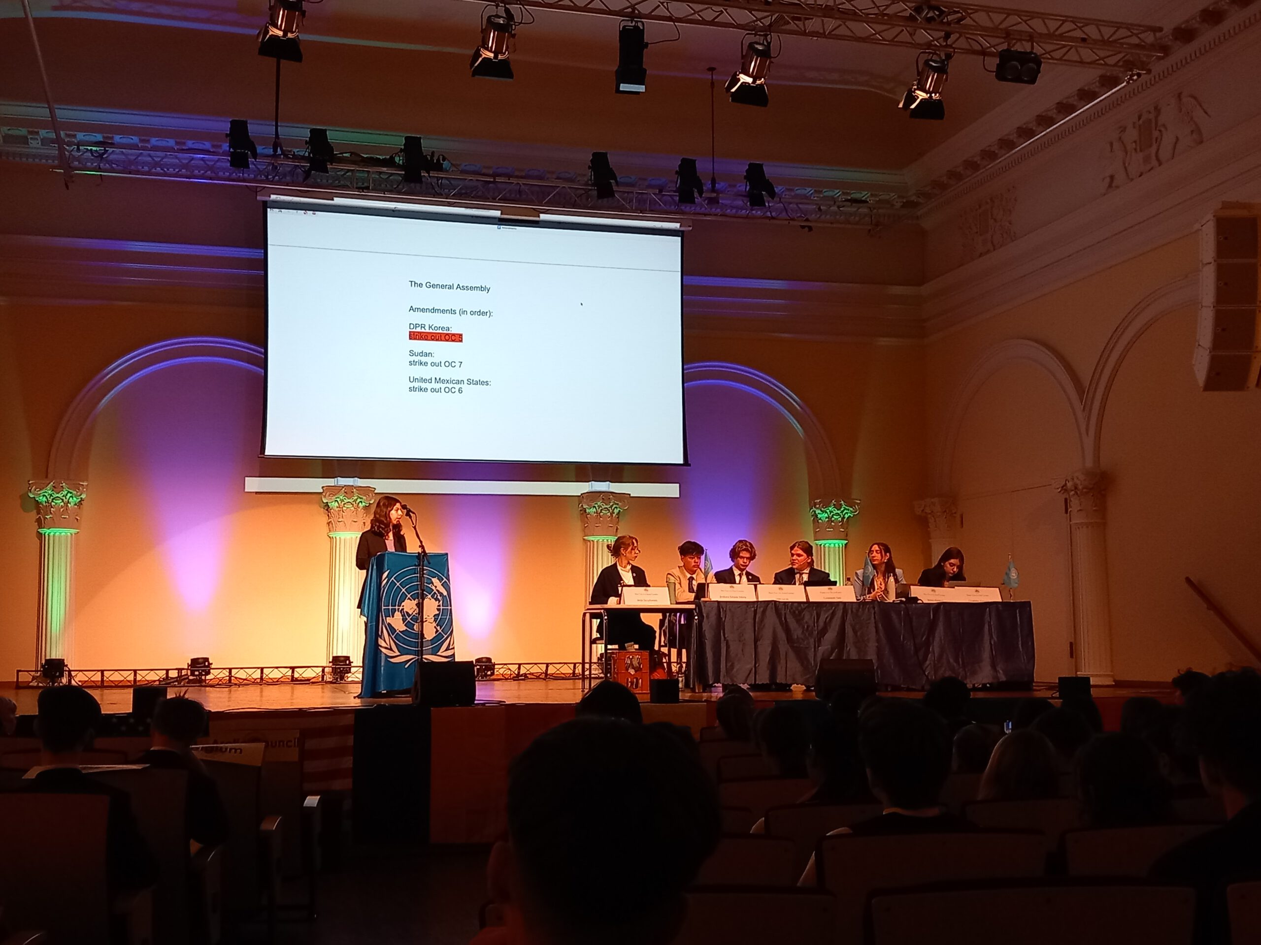 Eingeleitet wurde diese mit den Worten: „Let me offer you a very special welcome this morning and say what a tremendous honour it is for us to host the 20th Edition of Schulfarm Insel Scharfenberg … I am always impressed by the many inspirational and bright young minds that can come together to find a common solution to some of the world’s most pressing issues of our time.“ Vom Secretary General Navid Düngen. Ergänzend dazu der President of the General Assembly und auch Chair in the Human Rights Council Guilherme Rodrigues: „As many already know, this MUN may be the last of this school, what we really don’t want. What I mean by that is how important to remember that the participation of each delegation is essential for this event to be what it is today, where we value democracy, freedom of speech and the protecion of each culture as unique.“