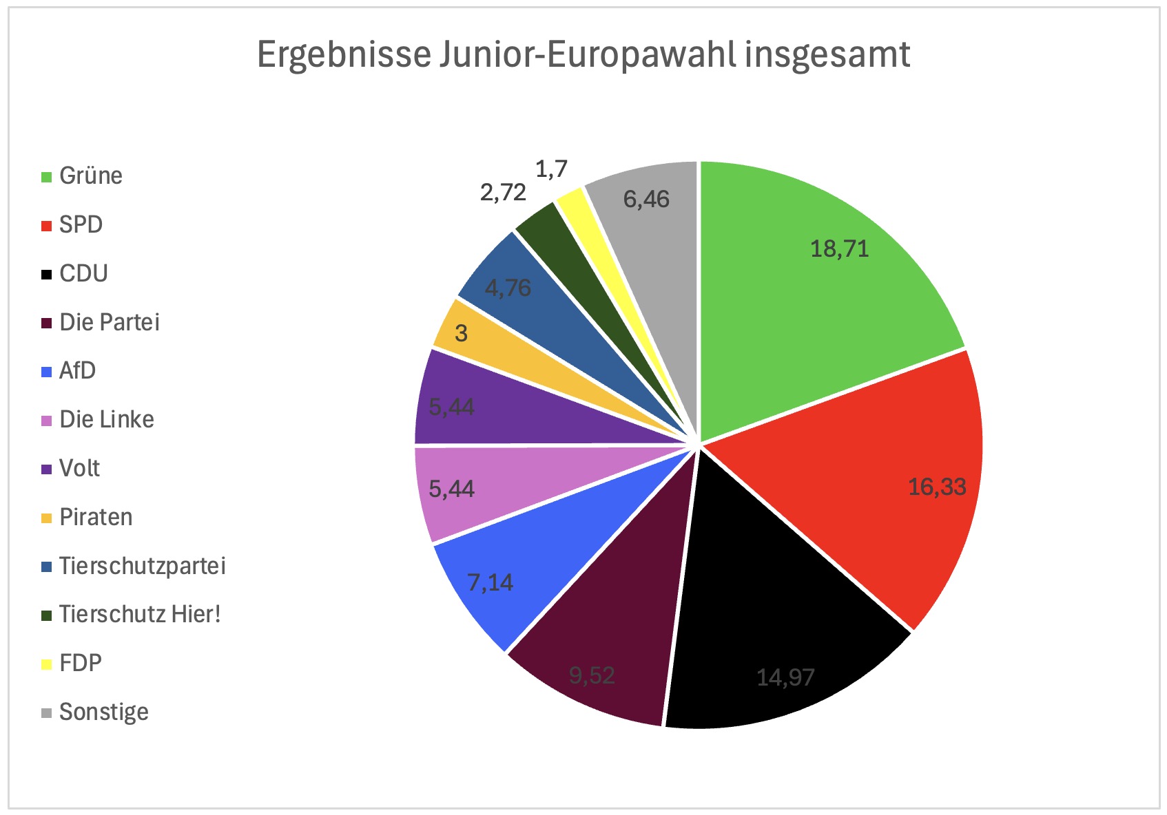 Mit diesem Beitrag möchten wir euch die Ergebnisse eurer „Scharfenberger Europawahl“ übermitteln. Wir möchten weiterhin die Gelegenheit nutzen, euch zu schreiben, warum wir die Ergebnisse erst jetzt veröffentlichen. Dies hängt damit zusammen, dass wir uns der politischen Neutralität streng verpflichtet fühlen und mit einer frühen Veröffentlichung keinen Einfluss auf euer tatsächliches Wahlverhalten oder das eurer Familien, Freunde und Bekannten ausüben wollten. Zusätzlich mussten die vielen Stimmen ausgezählt, ausgewertet und visualisiert werden, wofür wir Frau Weber und ihrem Leistungskurs Politik danken. Außerdem danken wir euch für eure rege Teilnahme! Die Ergebnisse könnt ihr den beiden Grafiken entnehmen.