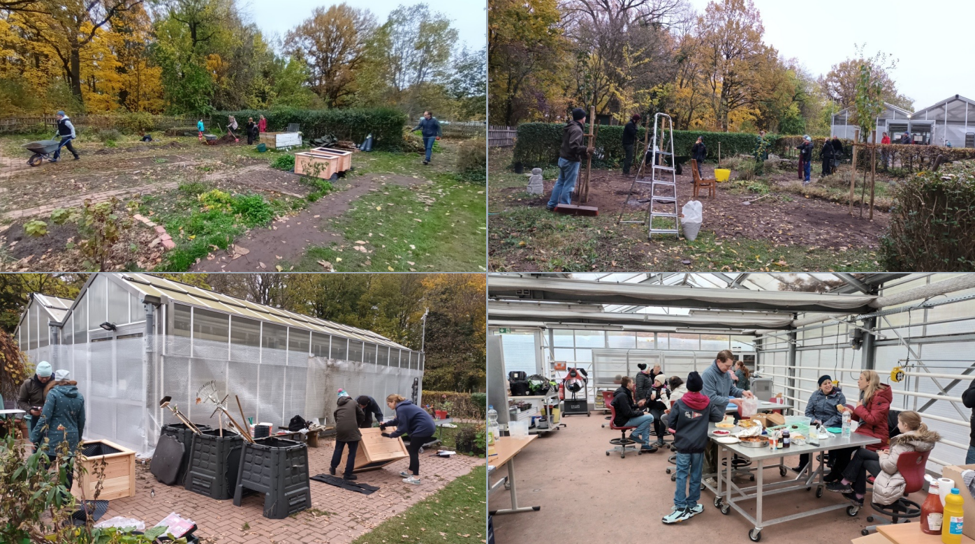 Über 80 fleißige, große und kleine Gartenbegeisterte waren gekommen, um unsere Inselgärtnerei zu einem noch schöneren Ort des Lernens zu gestalten. Es wurden sechs Bäume und 20 Beerensträucher gepflanzt. Alle Hecken wurden geschnitten und Gehölze gerodet, auch besonders stachlige. Wir haben Hochbeete ab- und aufgebaut, Kompostkisten konstruiert, umgegraben, viel Erde und Pferdemist verteilt, Wildkräuter entfernt, Laub gefegt und frisches Gemüse geerntet und natürlich auch gegessen, getrunken und geschwatzt. Herzlichen Dank für all die vielen Spenden: für Stifte, Schüsseln, Gläser, Ausstechformen, alte Handys, Tauschbücher, alte Druckerpatronen, für die vielen bunten Kuchen und Salate, die Bratwürste, die vielen Getränke und die guten Gespräche! Danke für alles und hoffentlich sehen wir uns in einem Jahr wieder im Garten, um das Gartenjahr dann auch wieder würdig zu beenden.